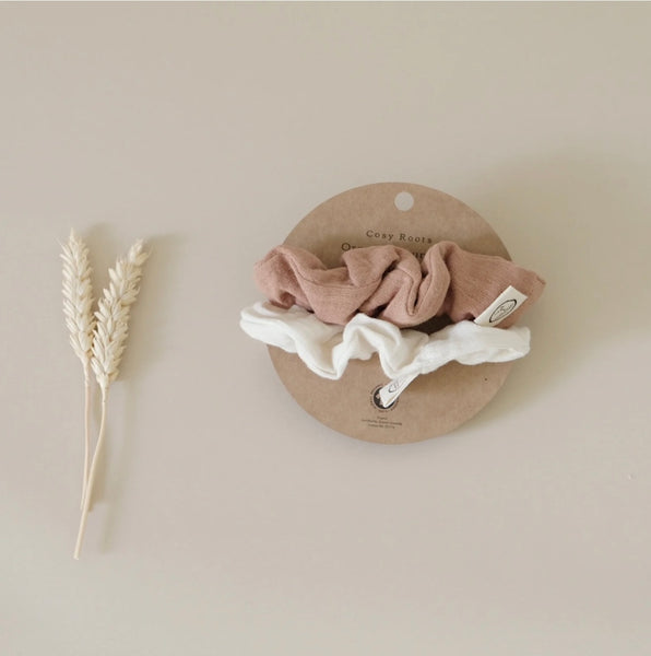 Organic Muslin Scrunchies - Dusty Rose/Caramel