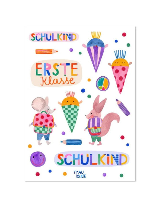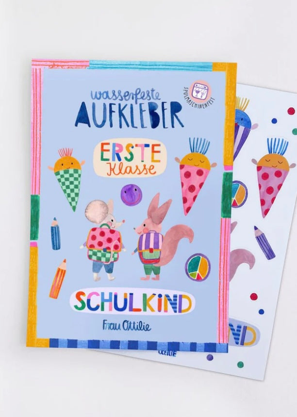 Diese wasser- und spülmaschinenfesten Aufkleber *Schulkind* für Mädchen und Jungen sind ein schönes Geschenk für die Einschulung. Passende Motive, wie Schultüte, Stifte, Schriftzüge und kleine Tiere mit Schulranzen individualisieren u.a. die Brotdose.