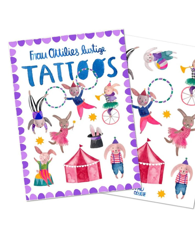 Unsere Zirkushasen Tattoos für alle Mädchen und Jungen, die es bunt mögen, Hasen und oder den Zirkus lieben oder vielleicht selbst kleine Akrobaten sind.